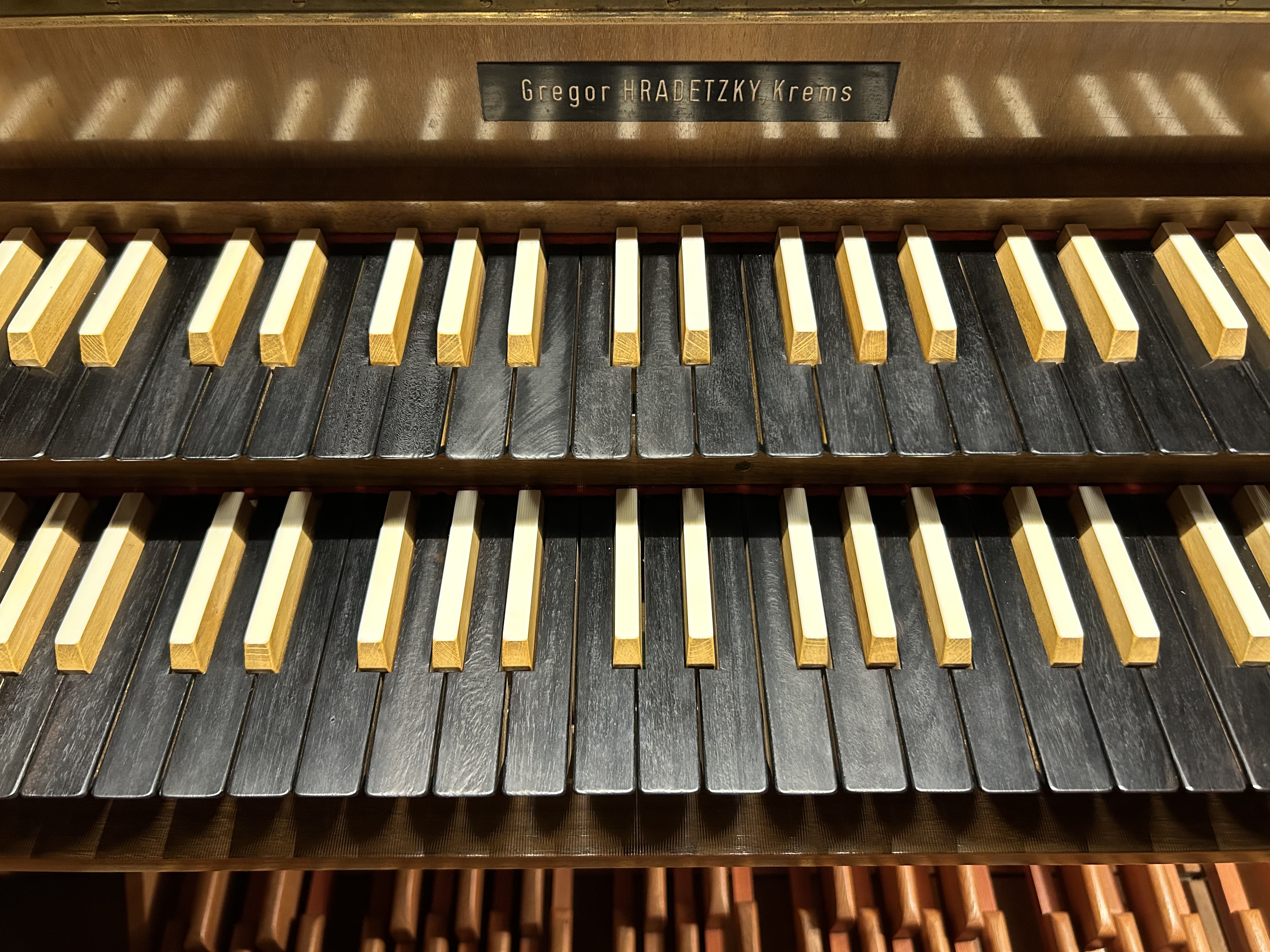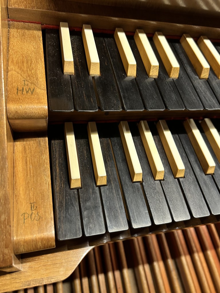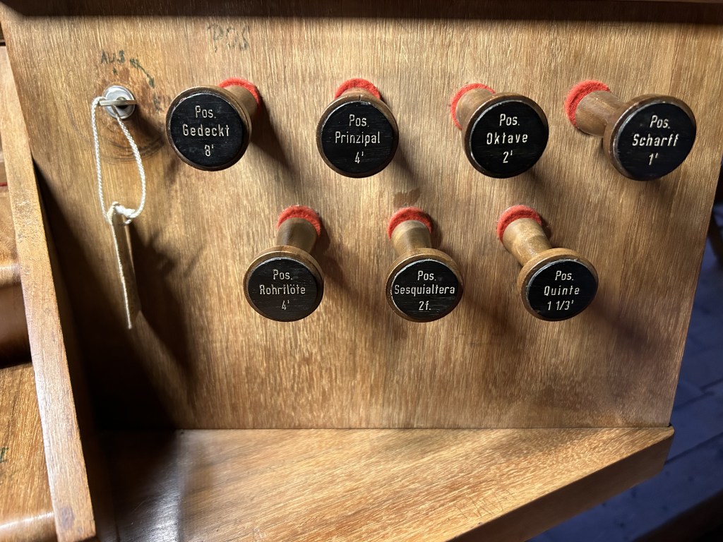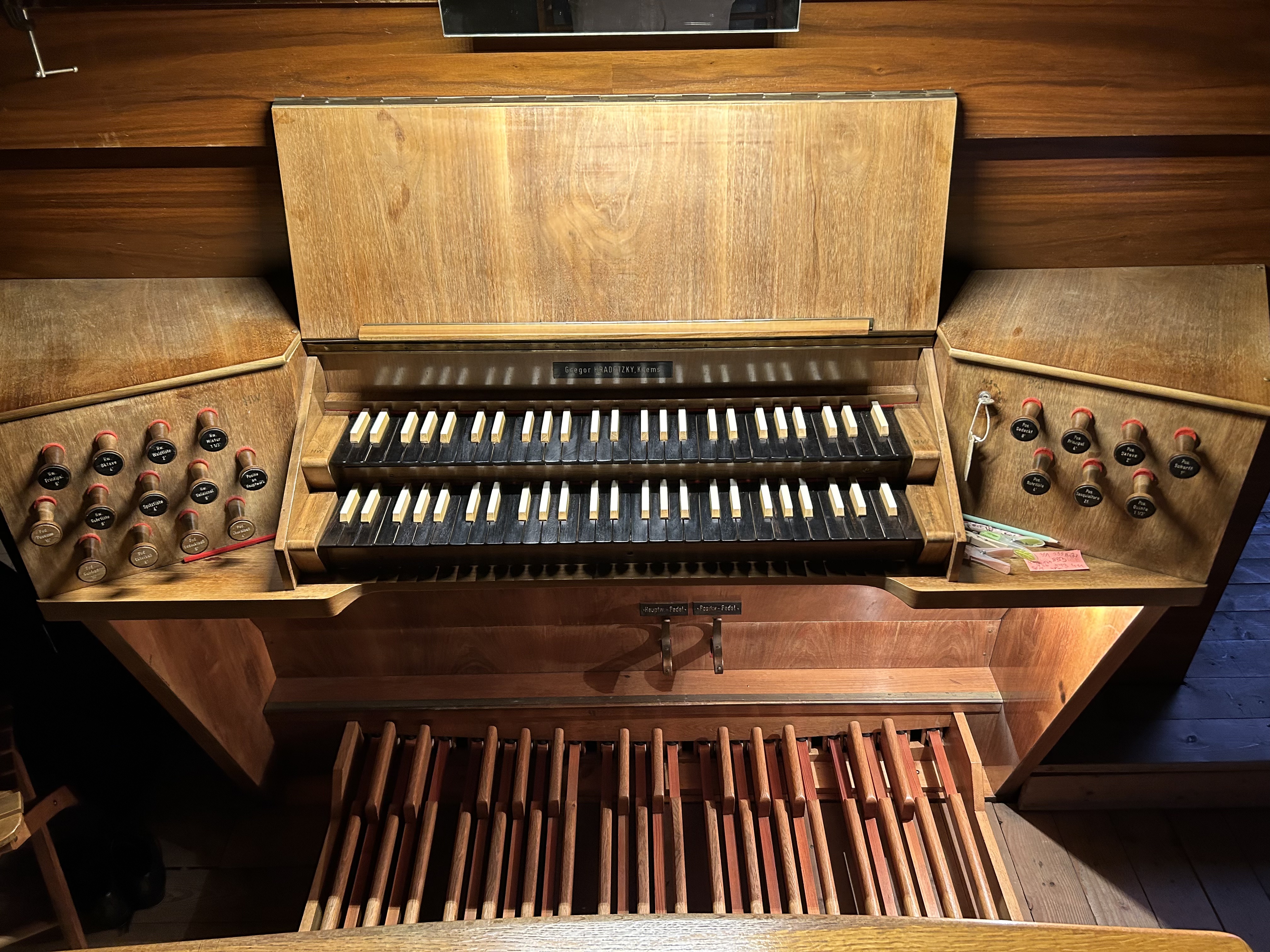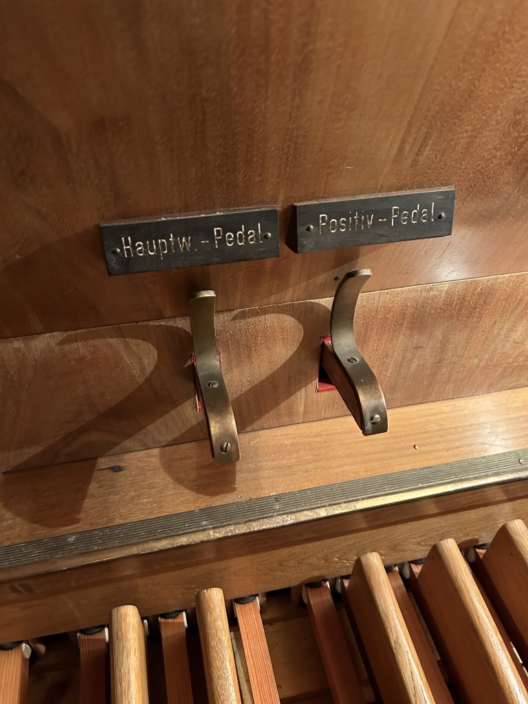 - 2-manualig, Pedal (I. HW + II. BP C-g3,P. C-f‘)