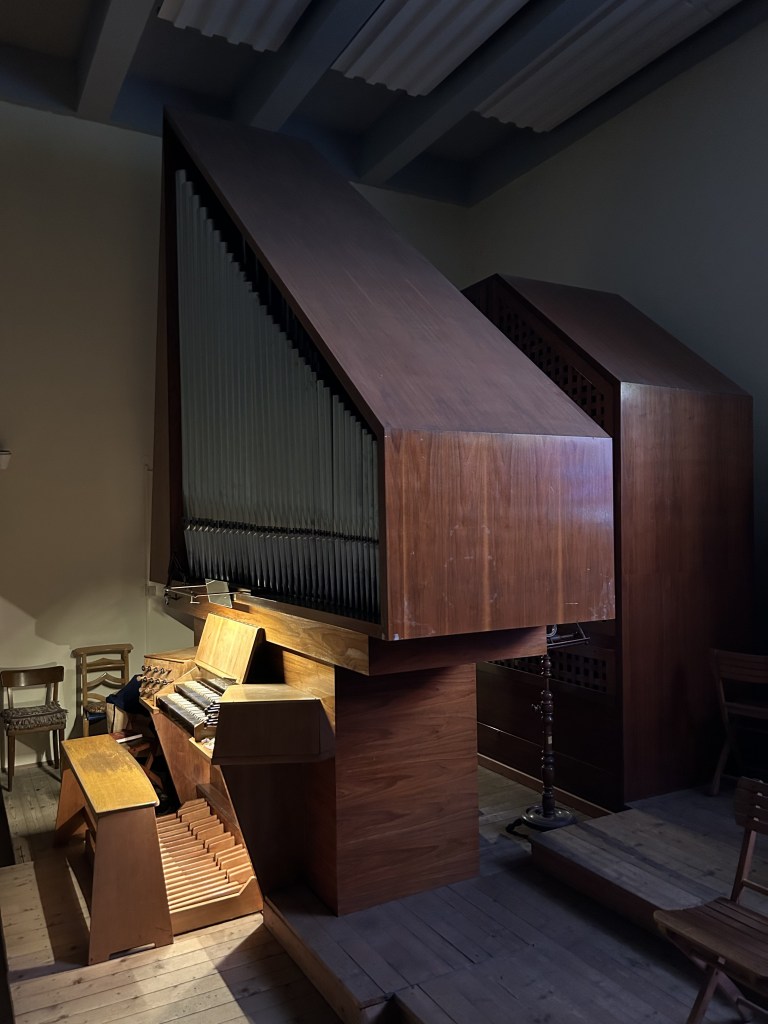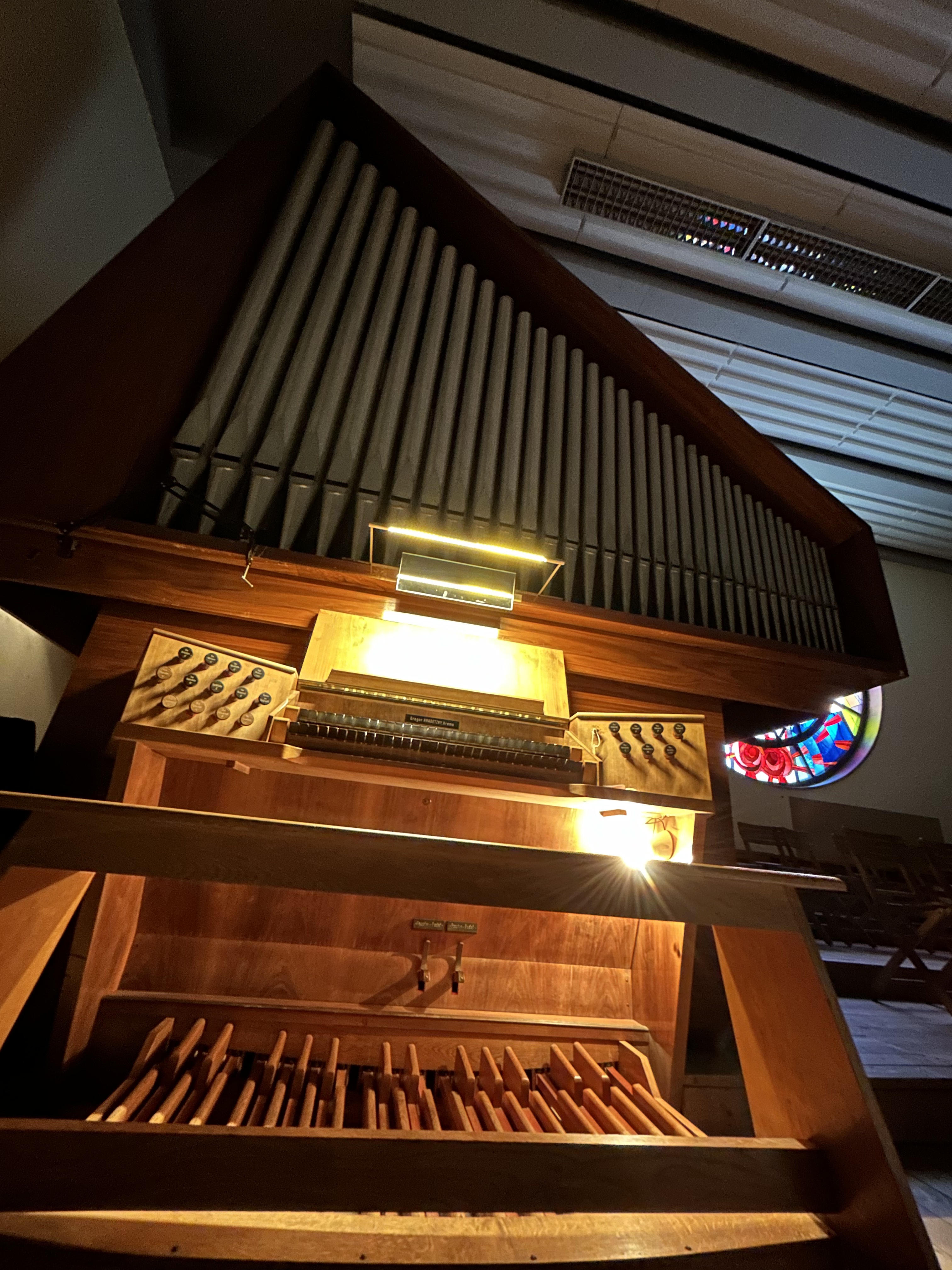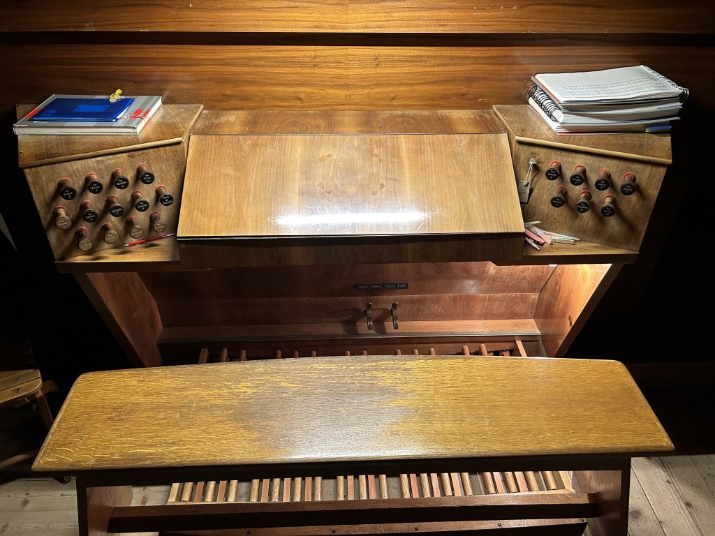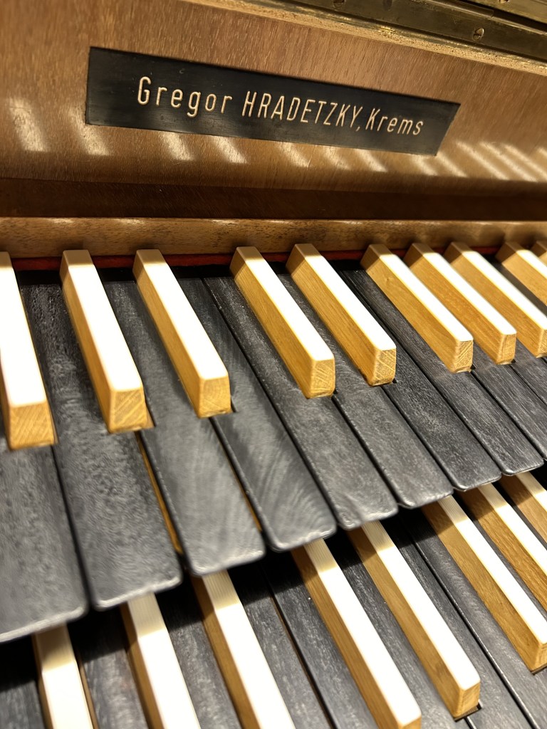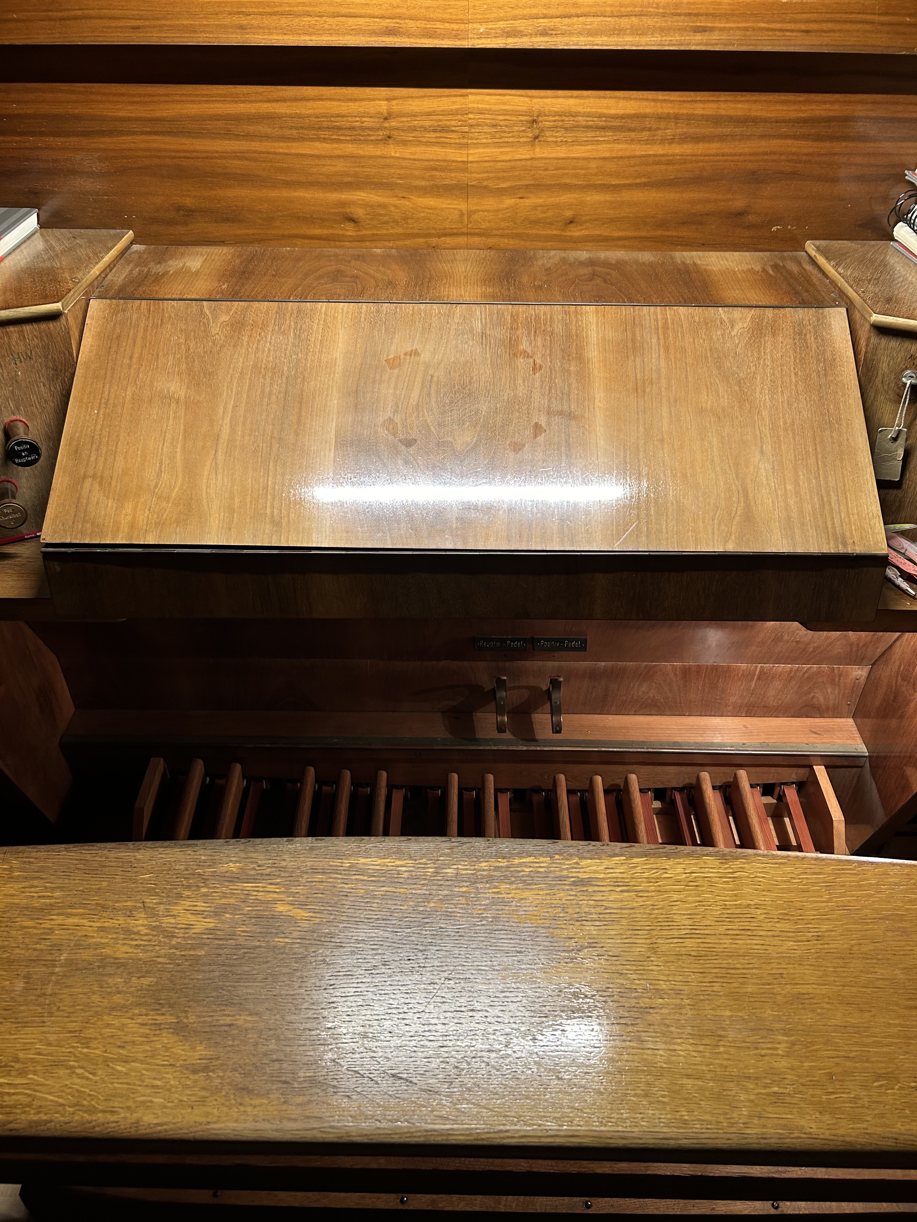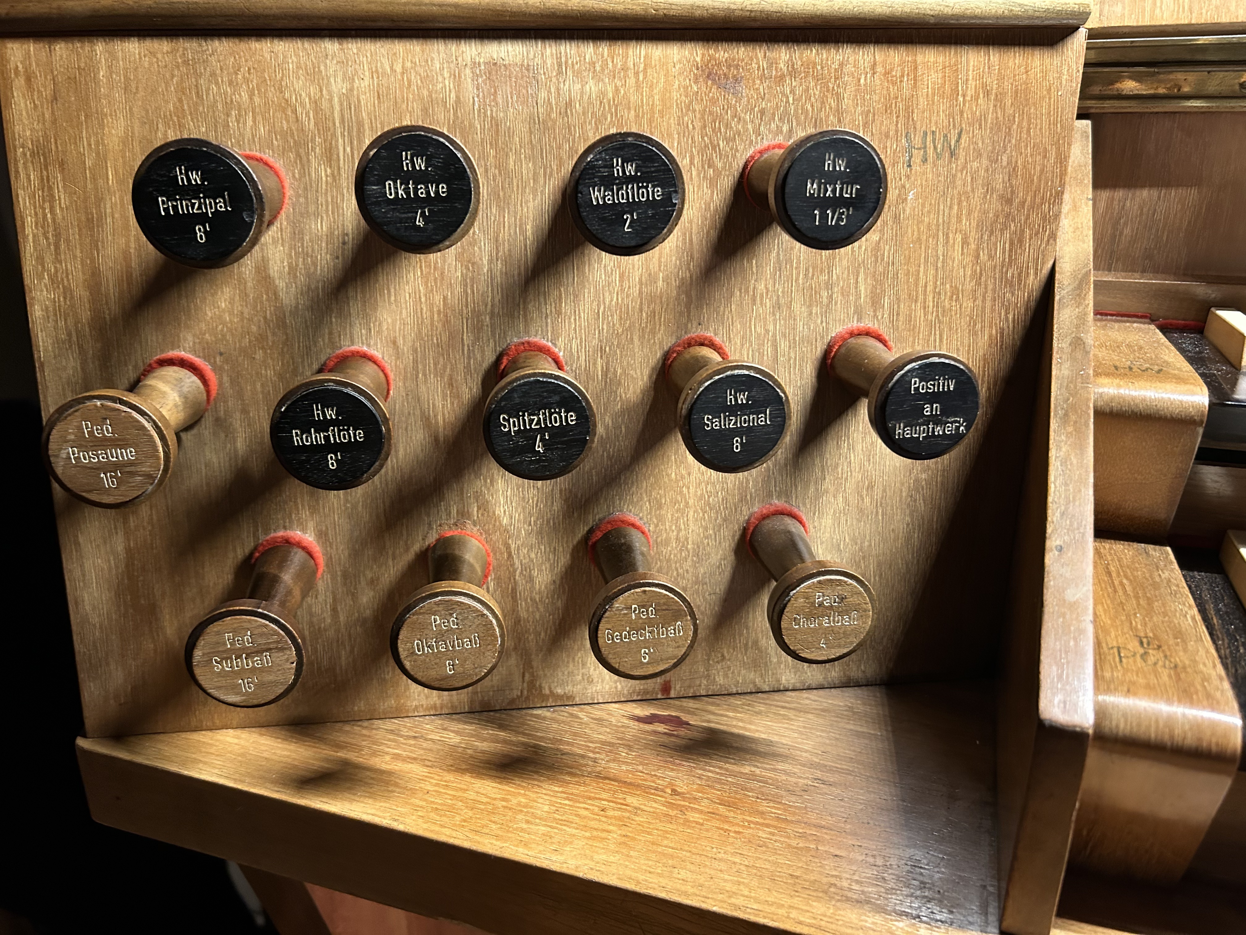 - 2-manualig, Pedal (I. HW + II. BP C-g3,P. C-f‘)