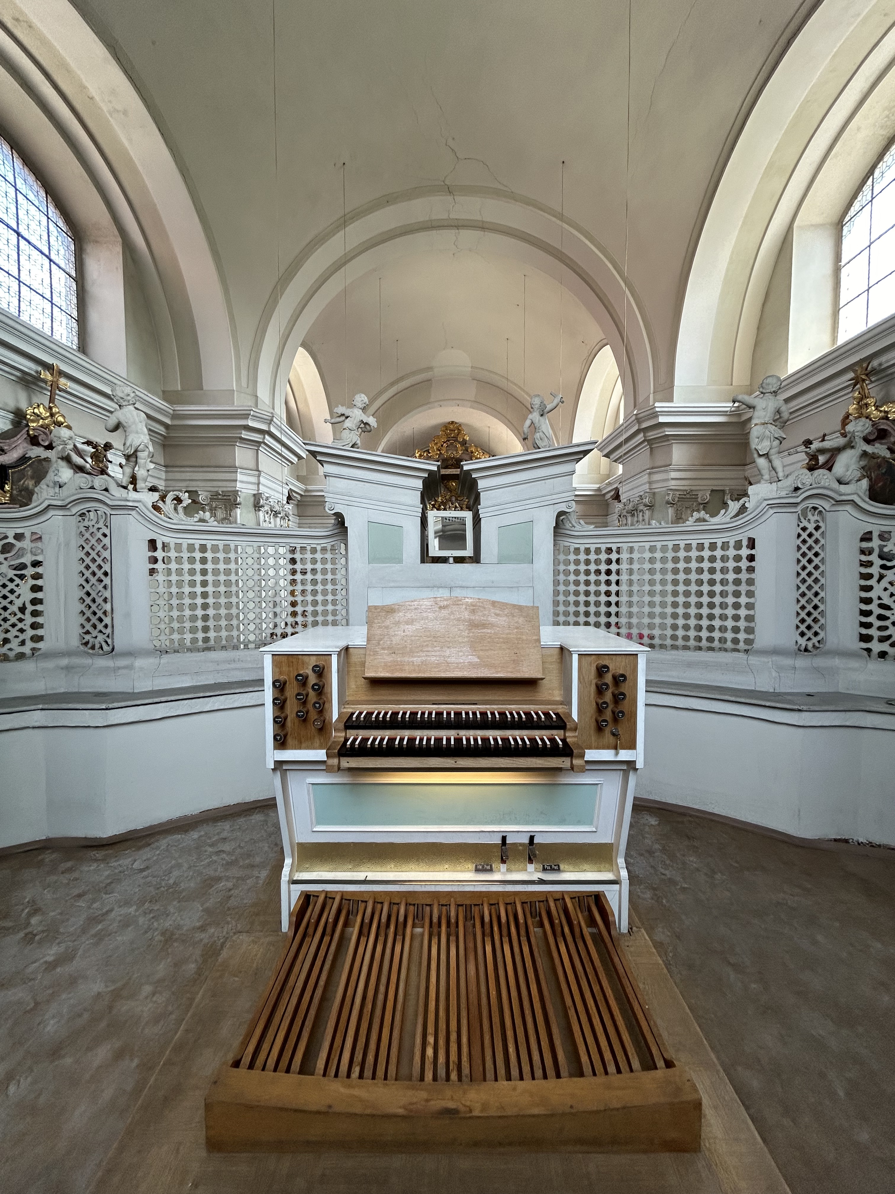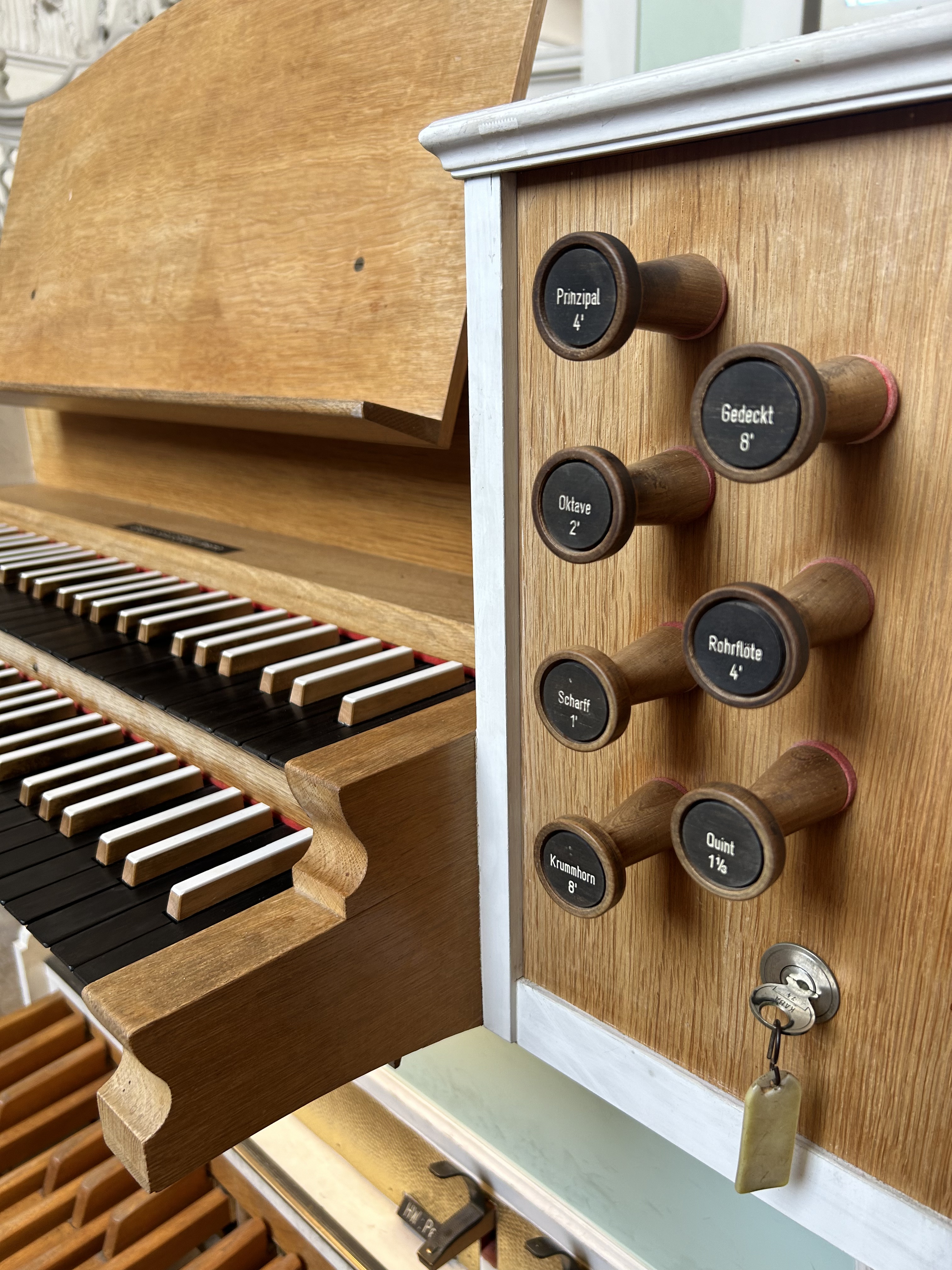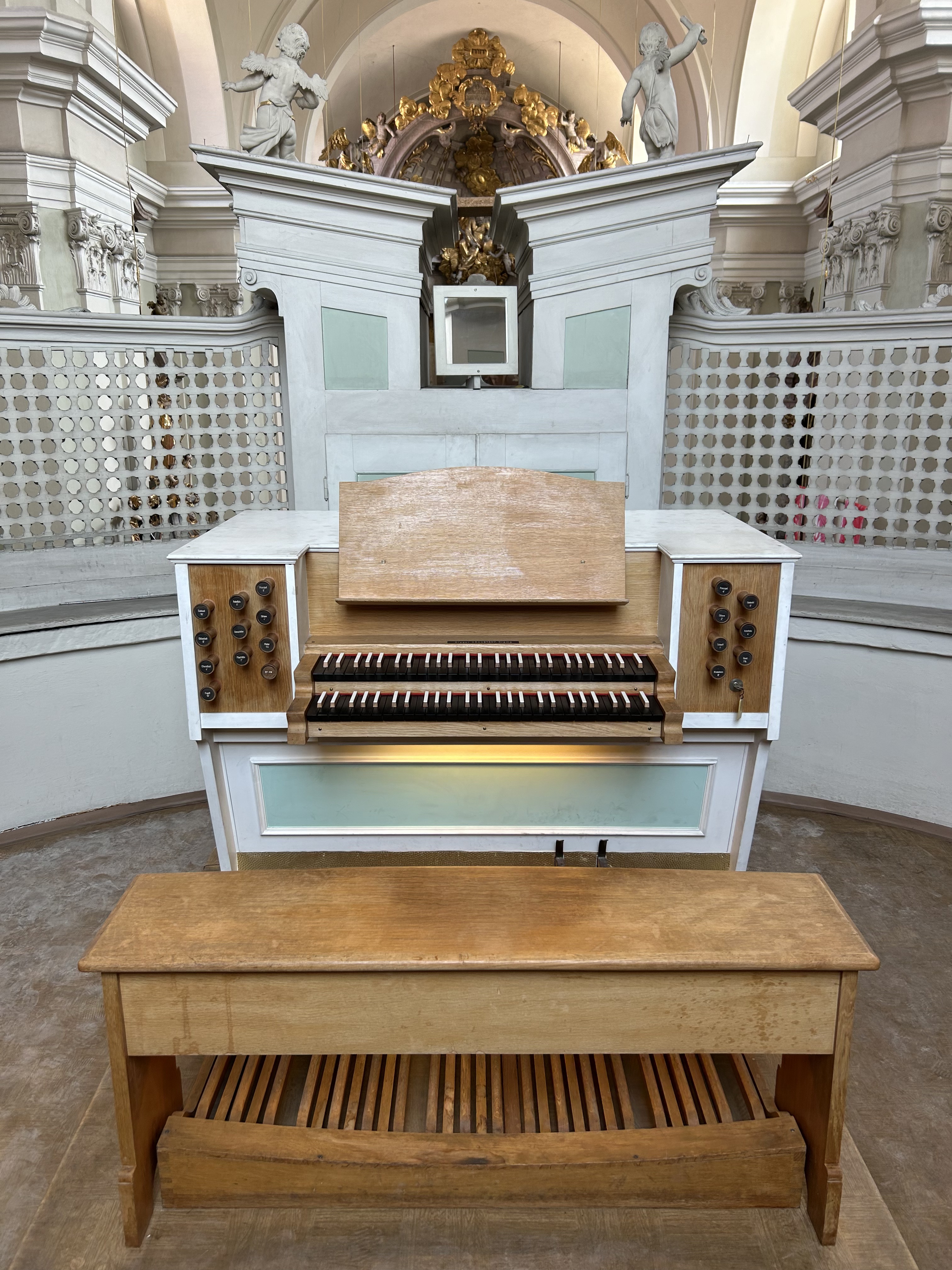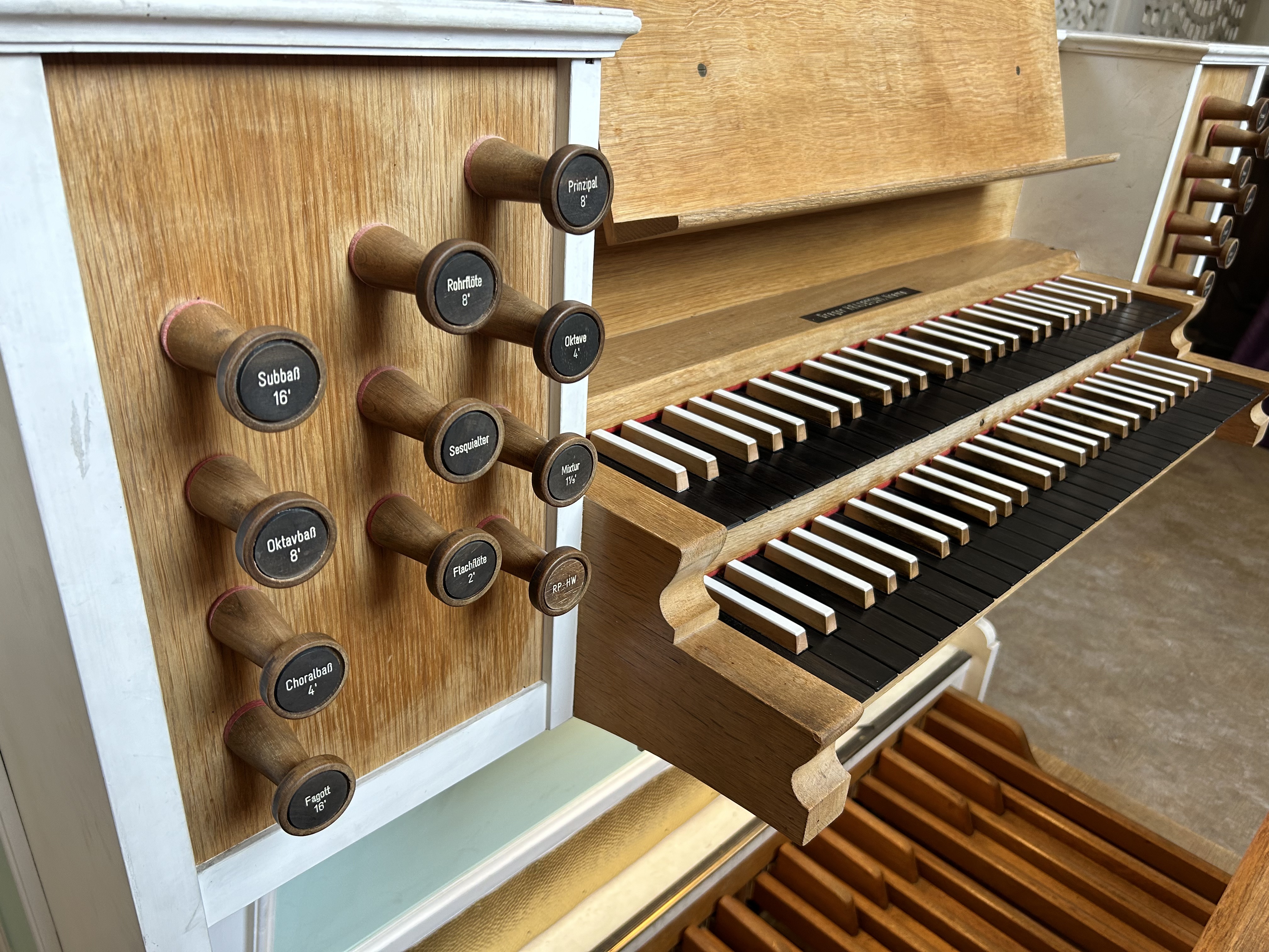 • 2-manualig, Pedal (I. HW + II. Brüstungspositiv C-f3,P. C-f1)