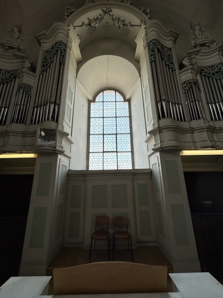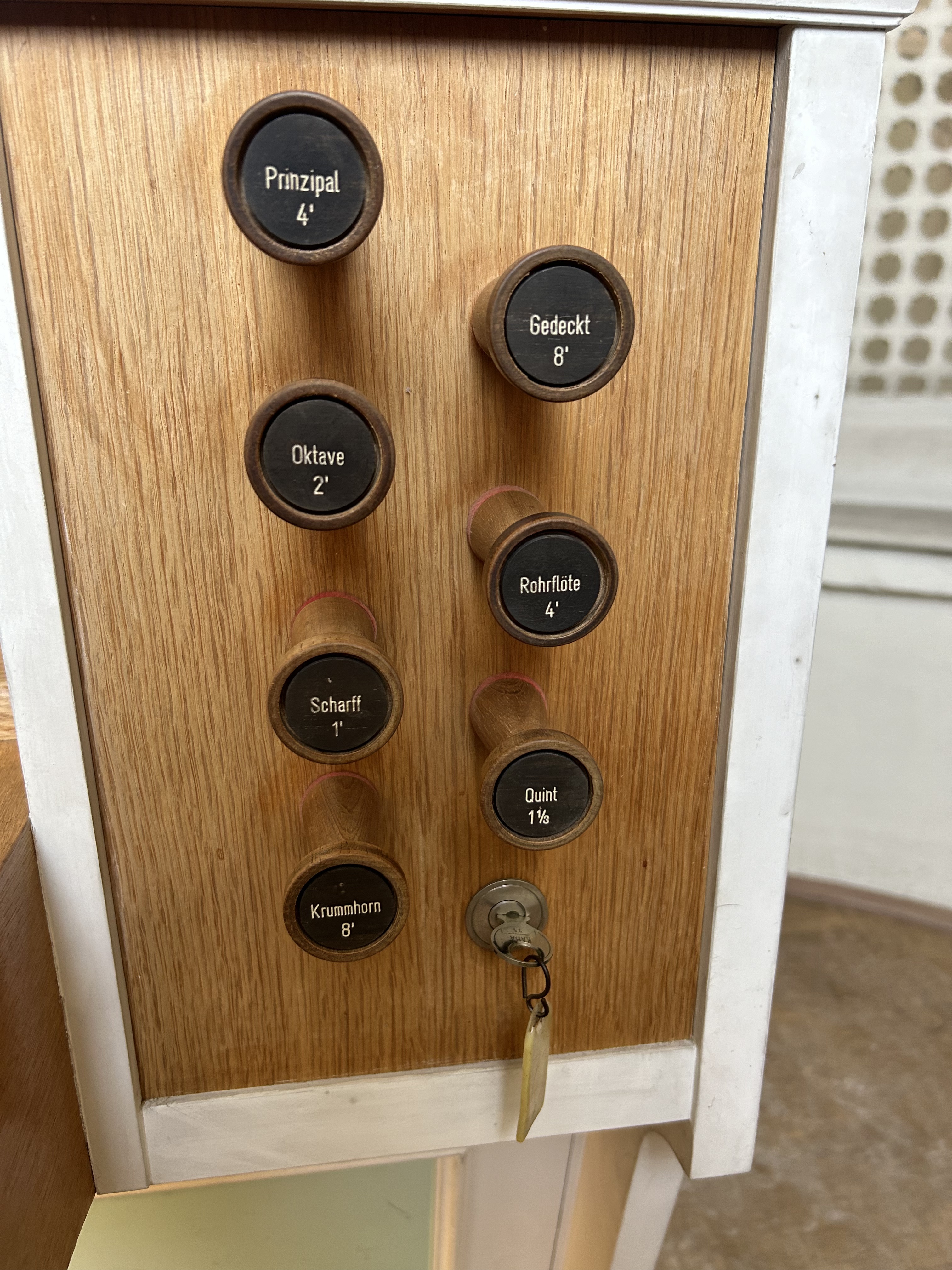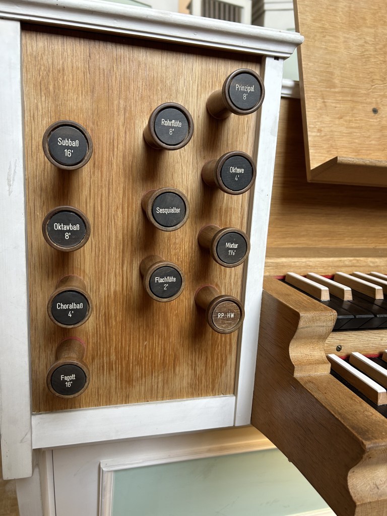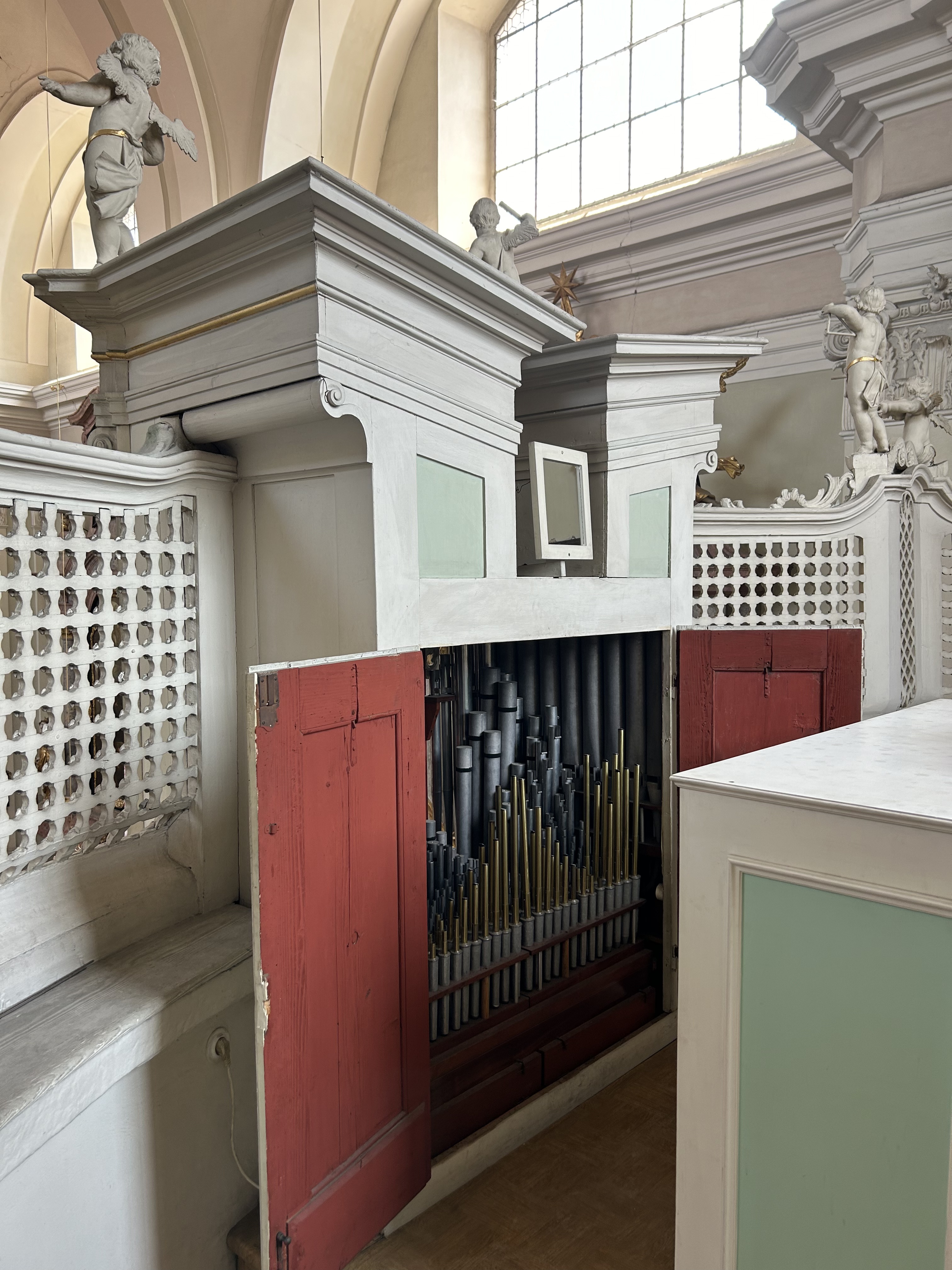 • 2-manualig, Pedal (I. HW + II. Brüstungspositiv C-f3,P. C-f1)