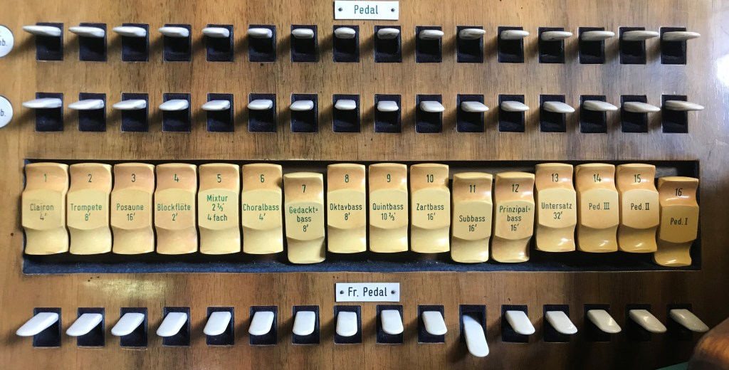 | Gross Prinzipal 8′ | Holzgedackt 8′ | Quintatön 16′ | Untersatz 32′ |