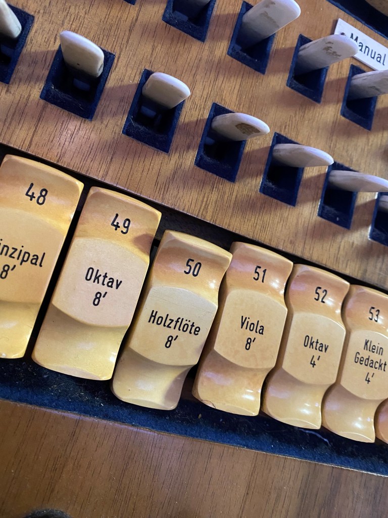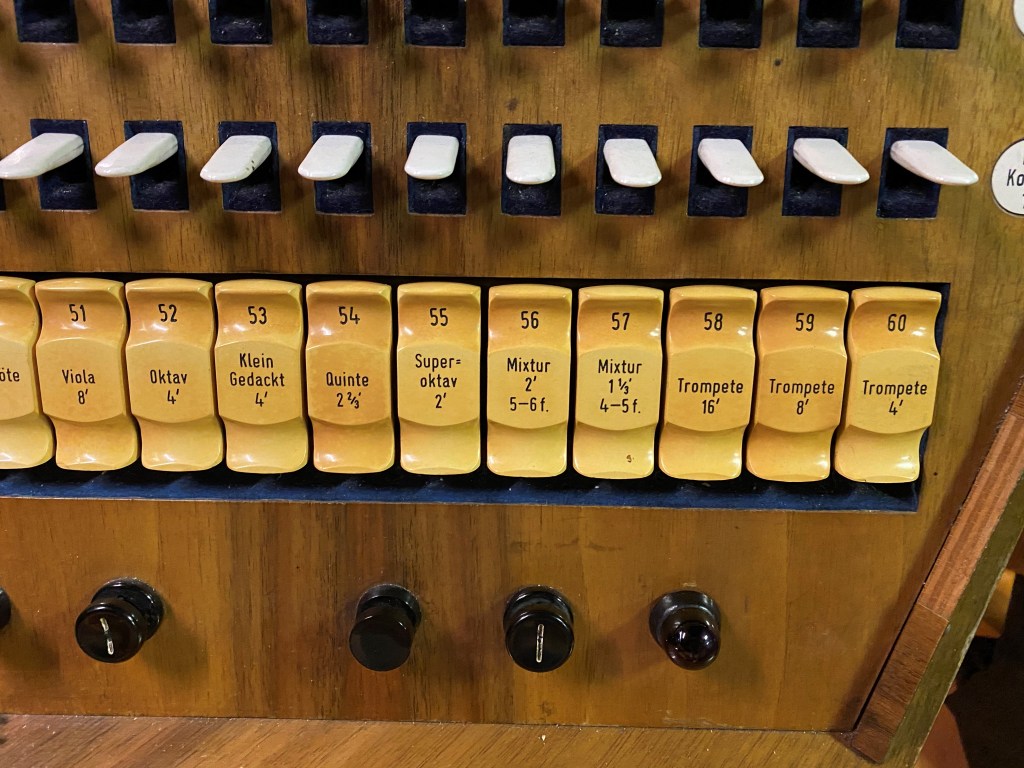 | Viola 8′ | Oktav 2′ | Schwebung 8′ | Quintbass 10 2/3′ |