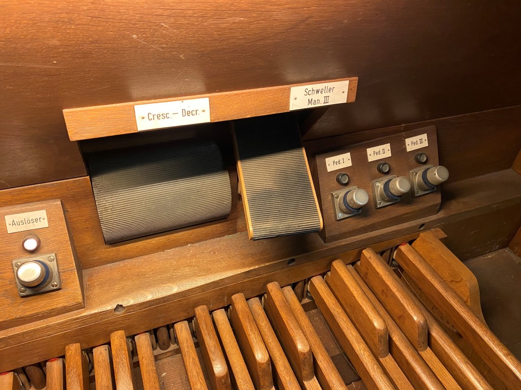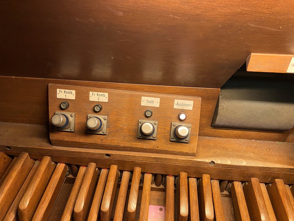 | Klein Gedackt 4′ | Quinte 1 1/3′ | Prästant 4′ | Oktavbass 8′ |