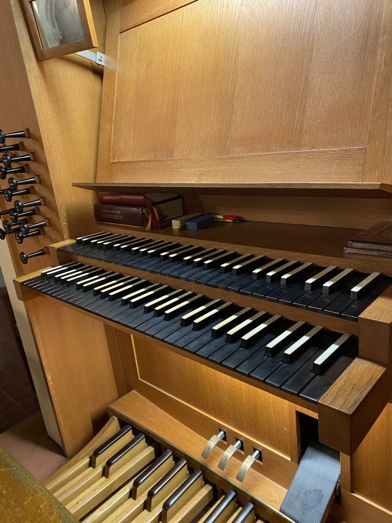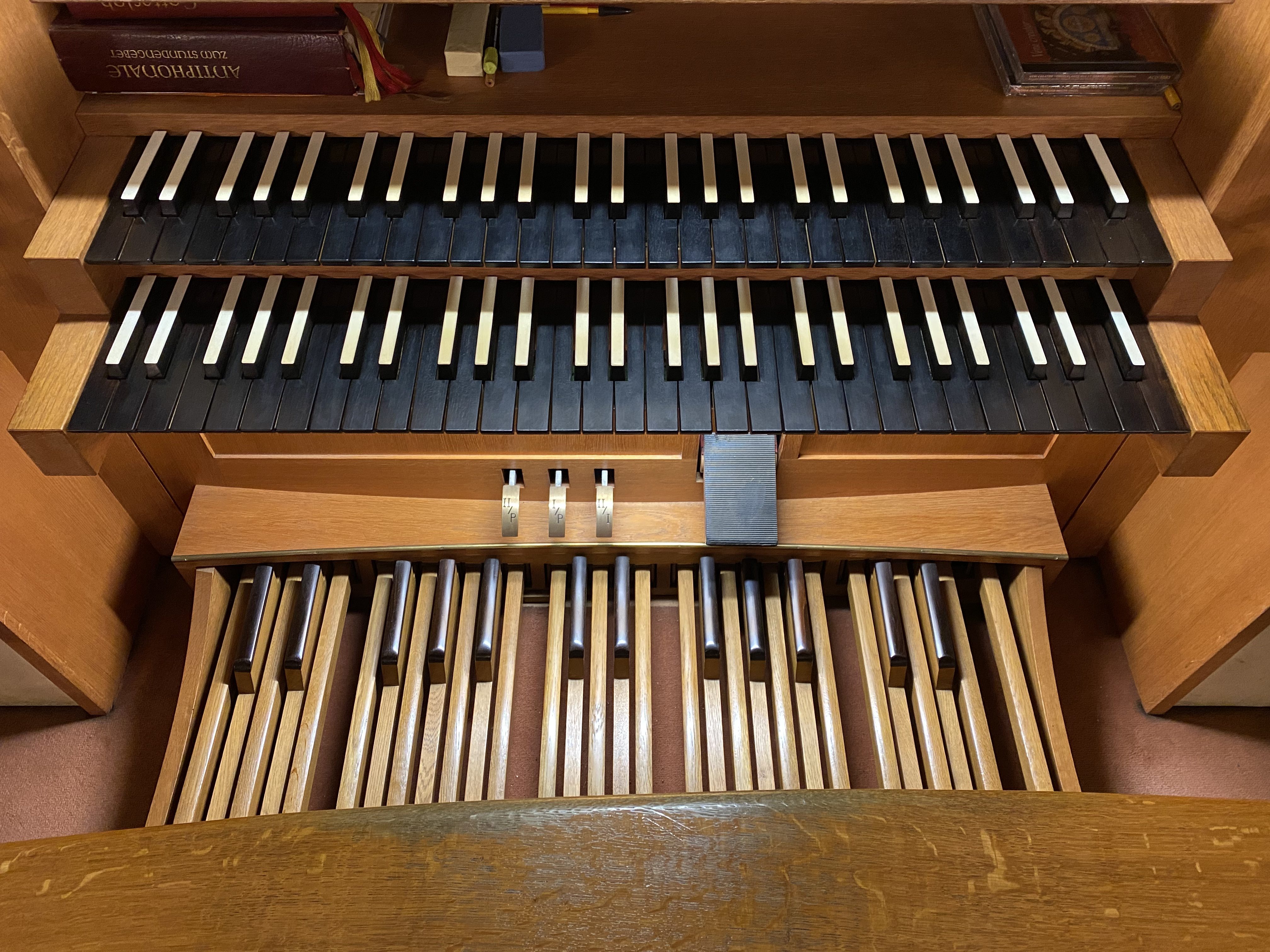 • 2-manualig, Pedal (I. HW C-g3, II. BW C-g3, P C-f1)