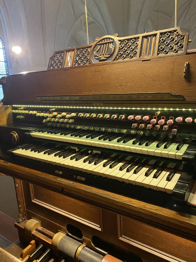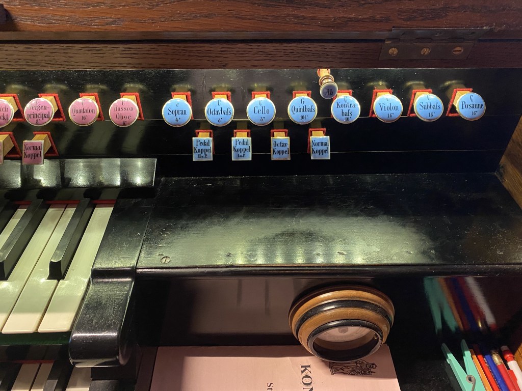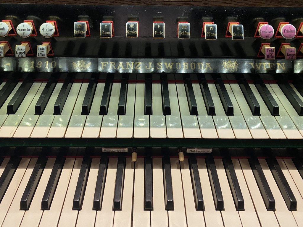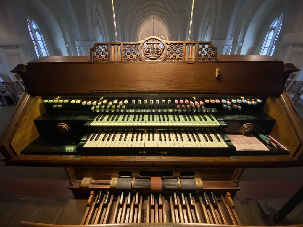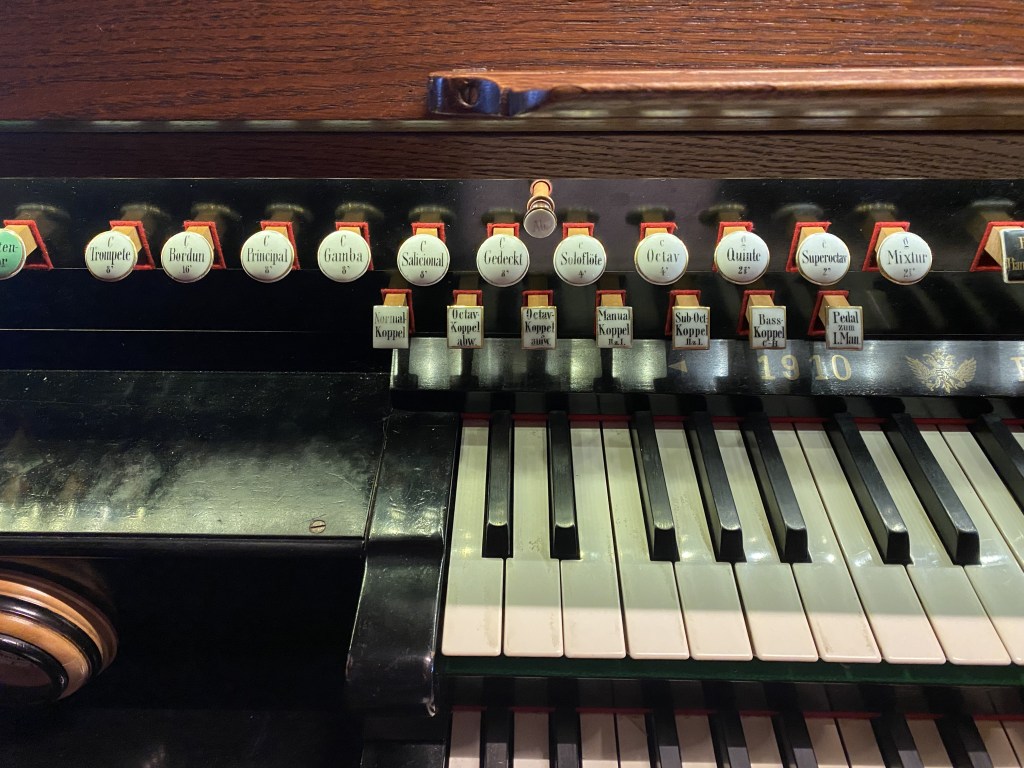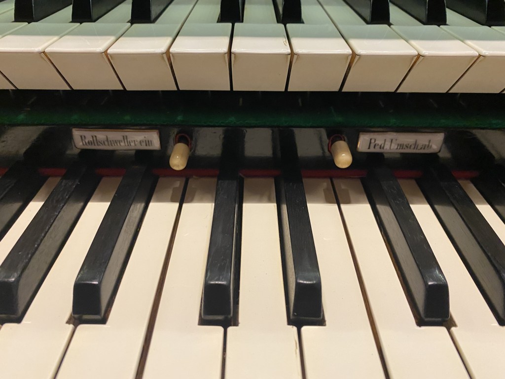 - 2-manualig, Pedal (I. HW C-a3, II. SW C-a3, P C-f1)